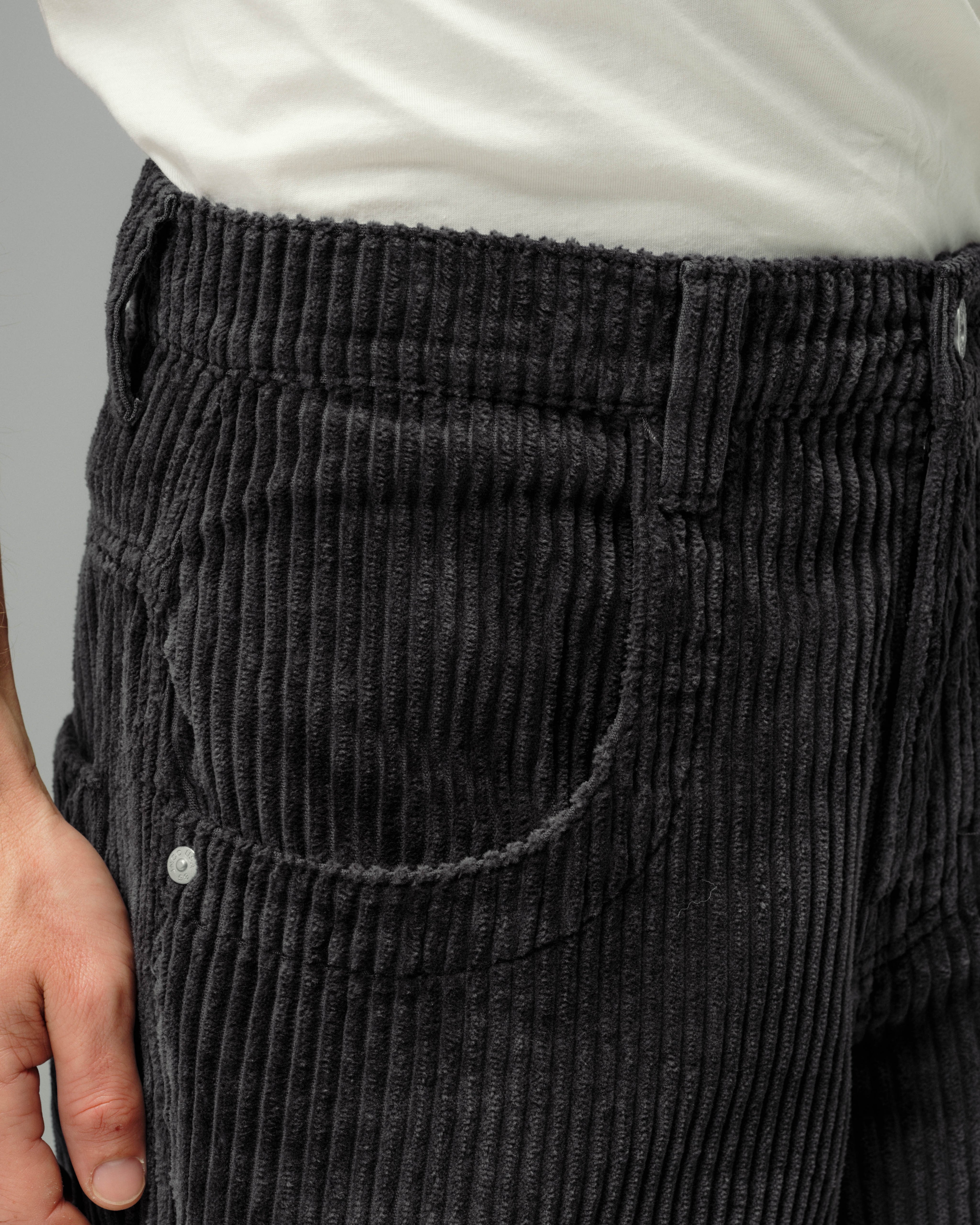 A JNCO staple in heavy 4-Wale corduroy in Magnet. 26" bottom opening, 12oz 100% cotton with a soft touch. Heavy double stitching, wide topstitched scoop and back pockets. Original artwork, labels, and iconic J embroidery on back pocket. Collectible flasher included.