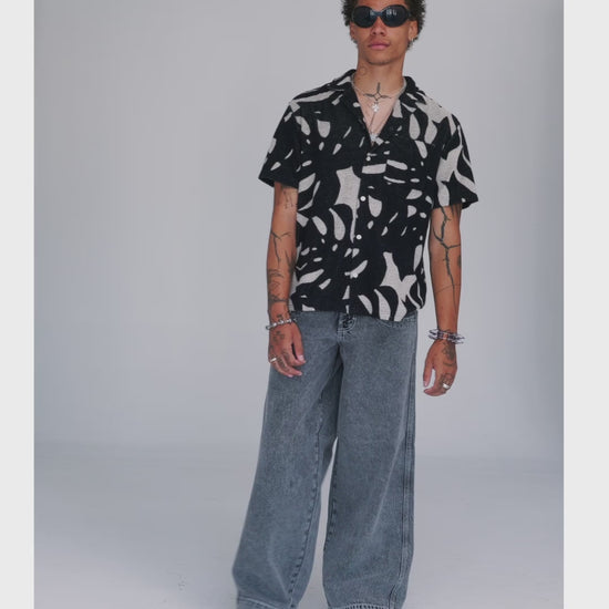 A JNCO classic in Vintage Black denim. 13oz 100% cotton rope-dyed with a luxe starch wax finish and vintage “moonlight” wash. 26" bottom opening with contrast stitching and wide double-stitched scoop and back pockets. Features original artwork, labels, and metallic swivel J embroidery on back pocket. Collectible flasher included.