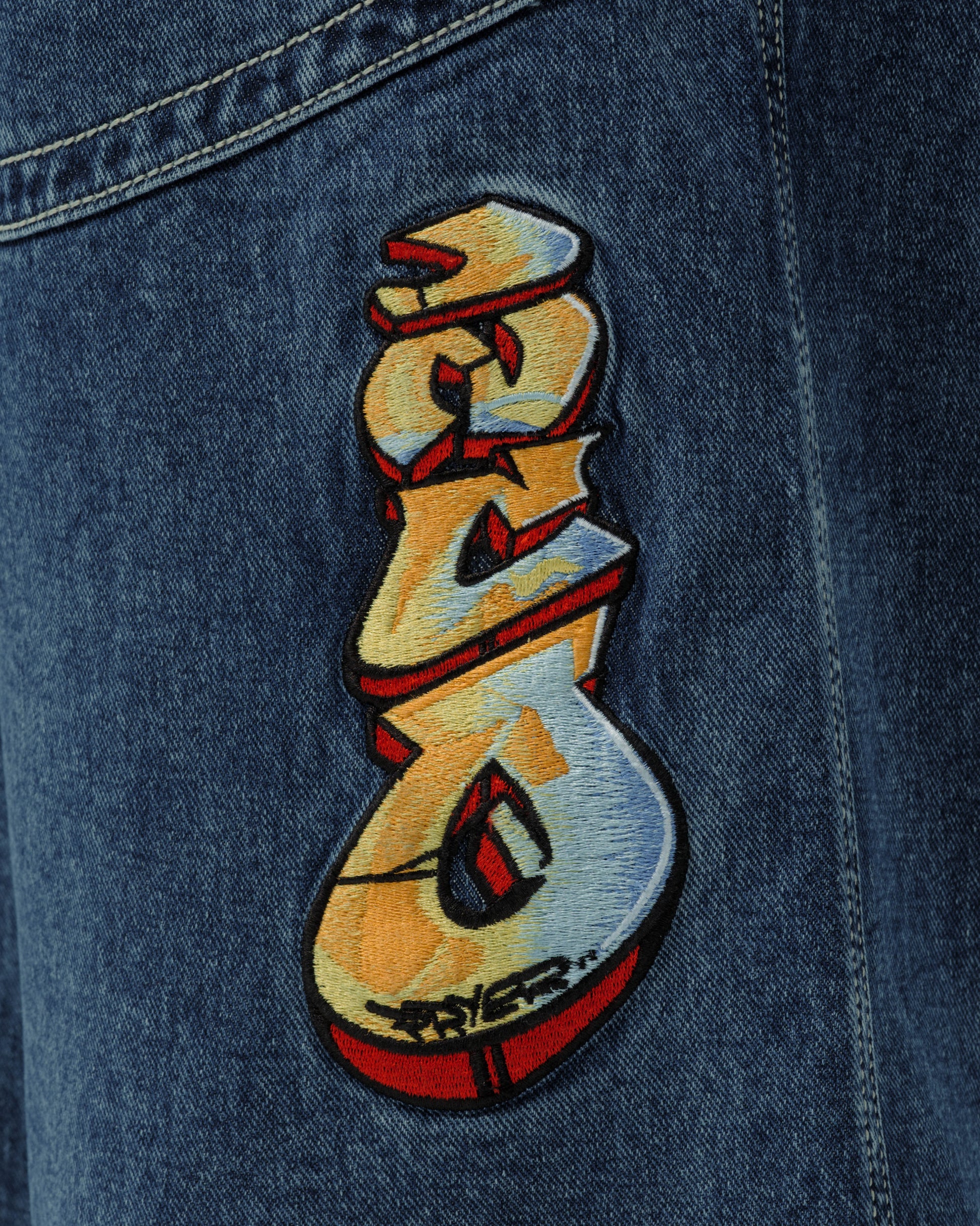 Collector’s item from the original JNCO Roots line. Dark Stone Wash, 30" bottom opening. 14oz 100% cotton denim with heavy double contrast stitching and six rows on back yoke. Back leg logo embroidery with 50,000+ stitches, signed by the original graffiti artist. Original labels, collectible flasher, and JNCO Roots stickers. Limited Edition – very limited stock.