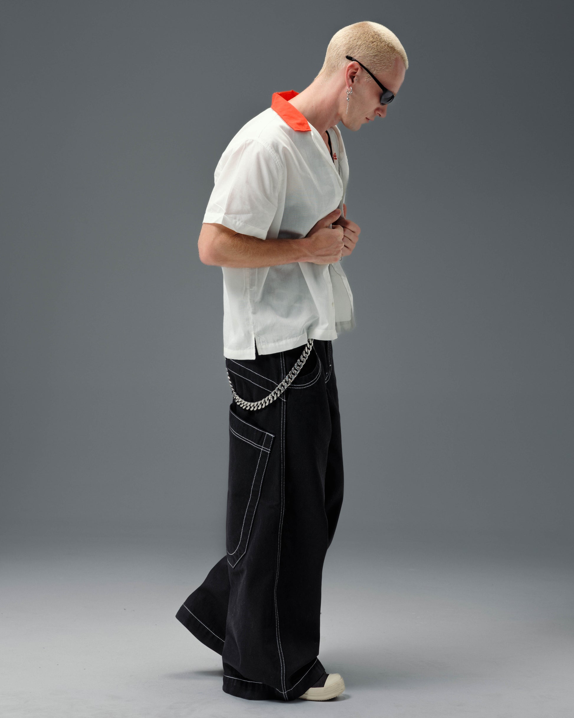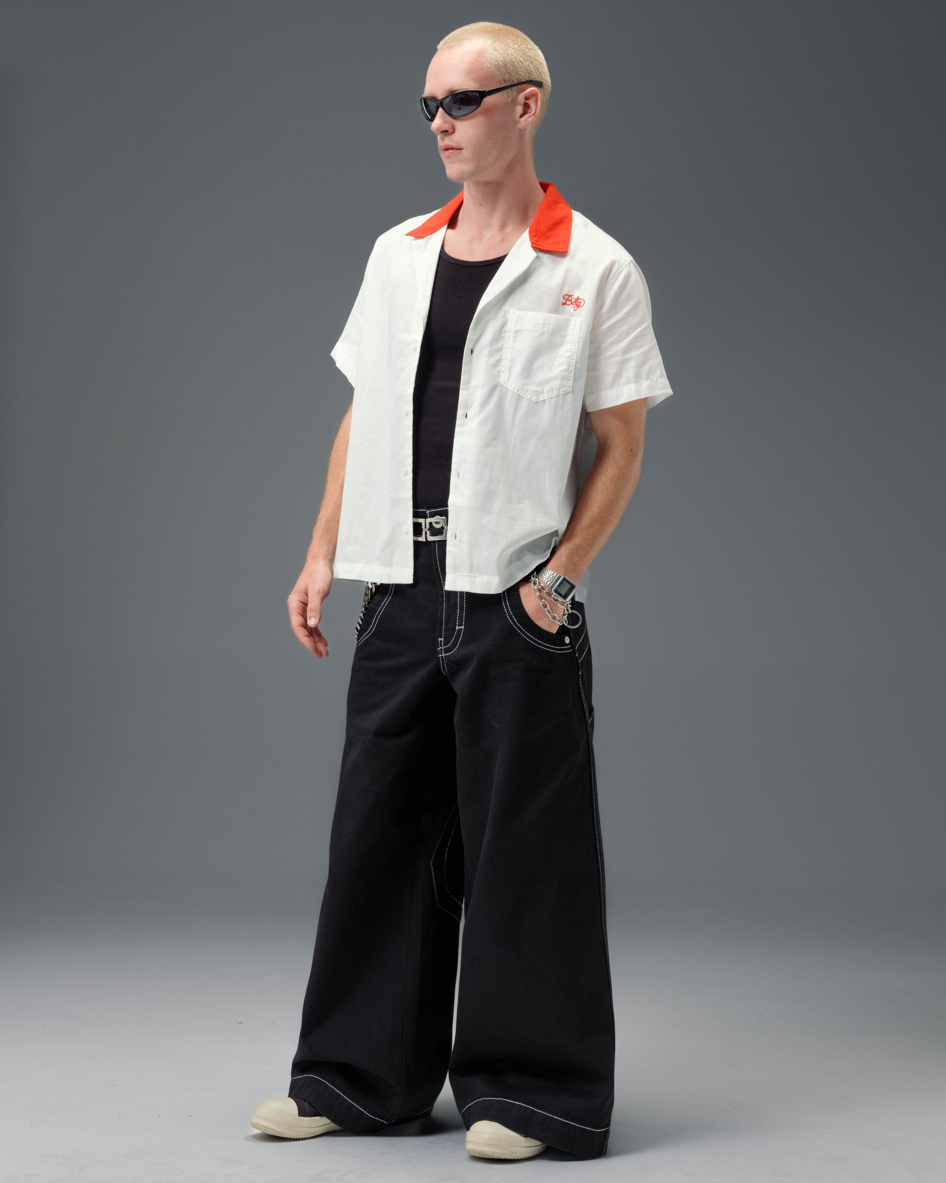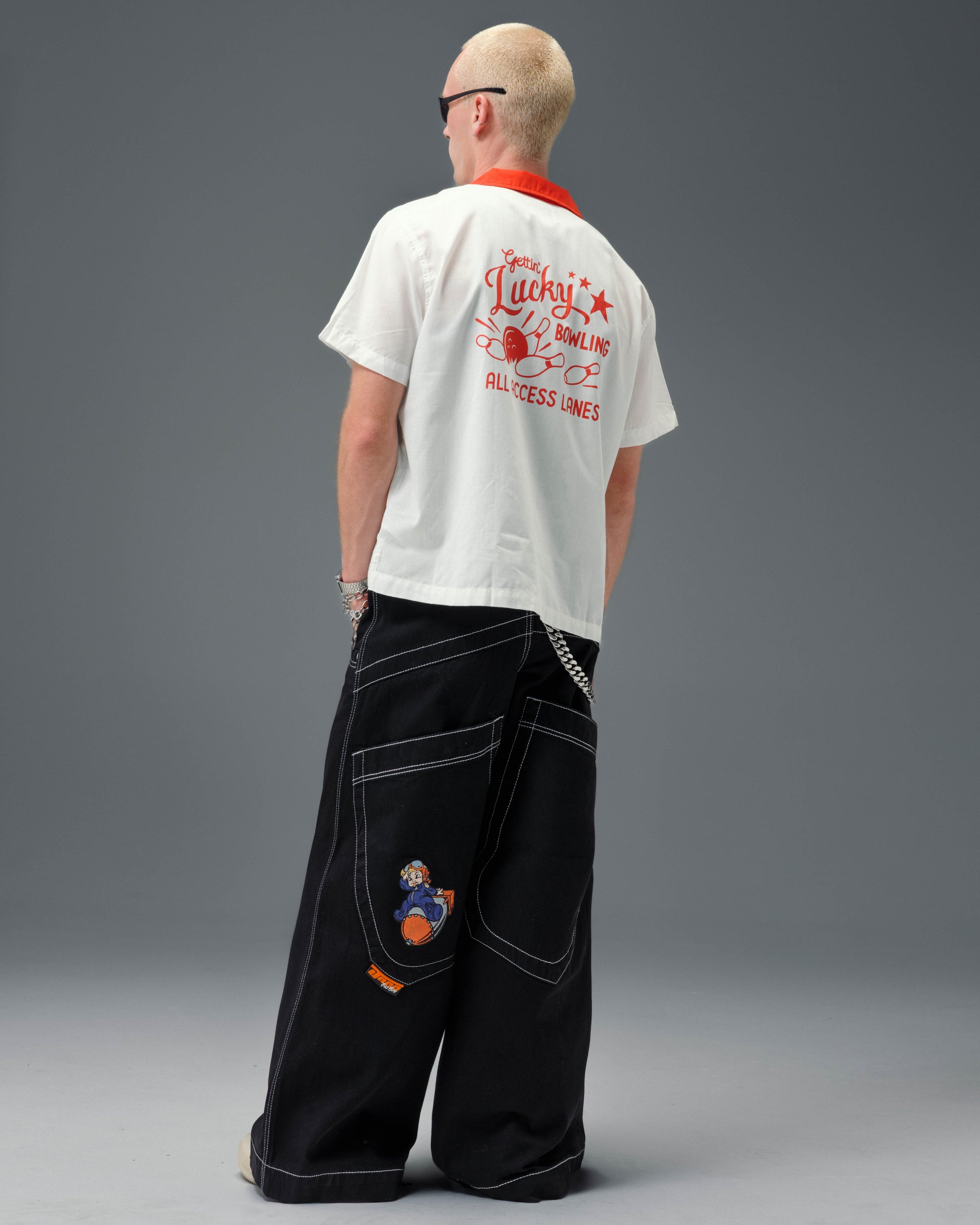 Includes heavy contrast double thread, original artwork, labels, and back left pocket embroidery.