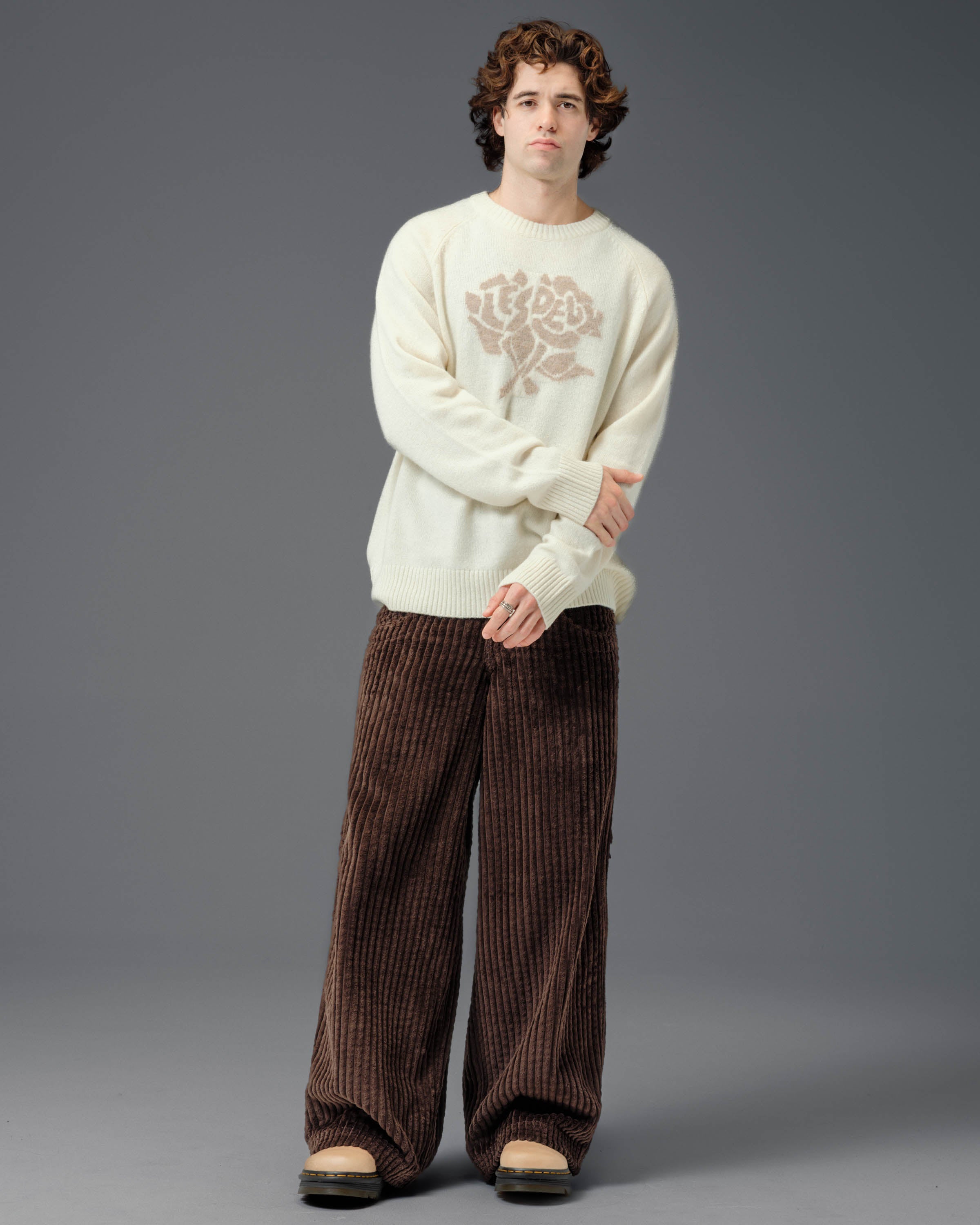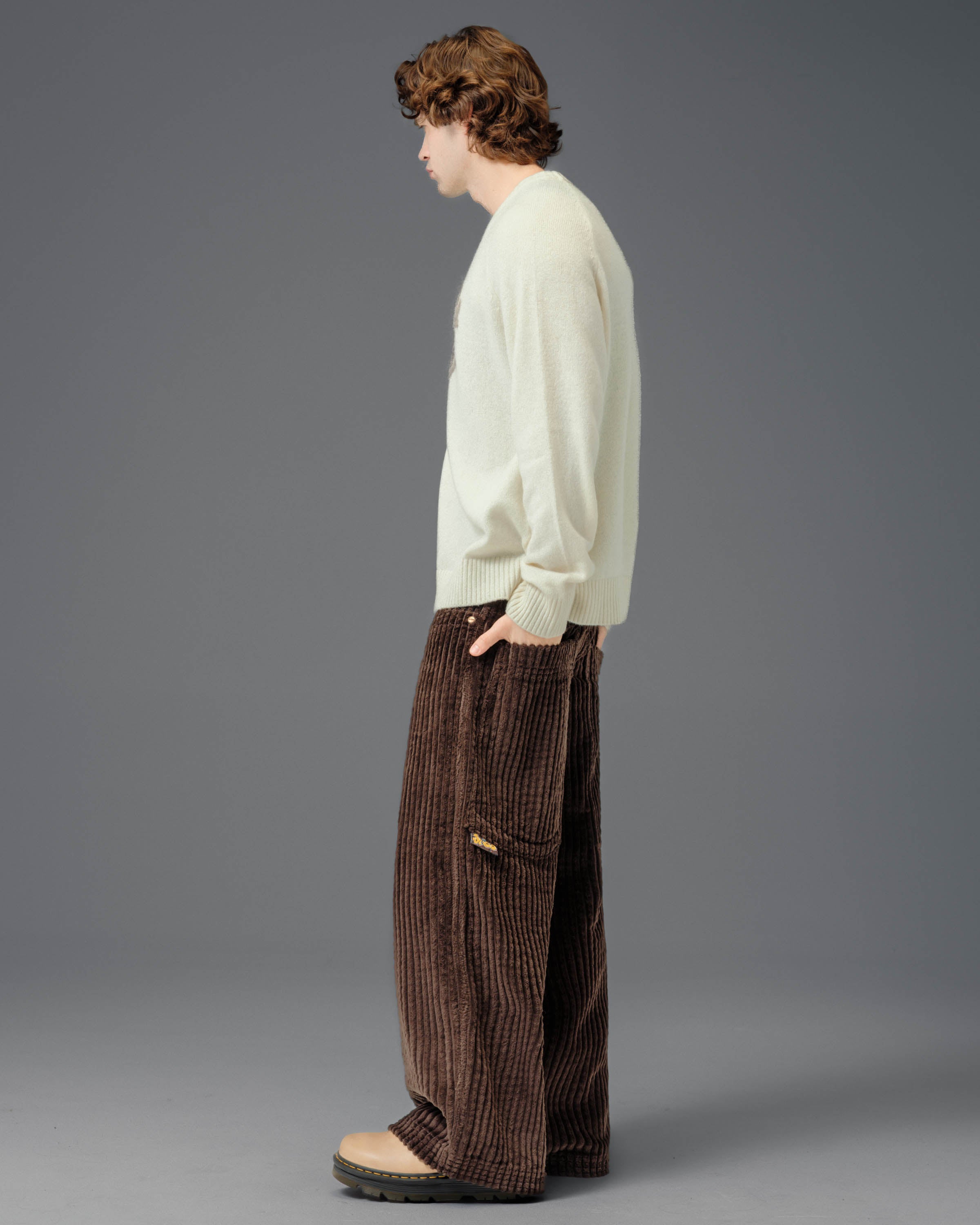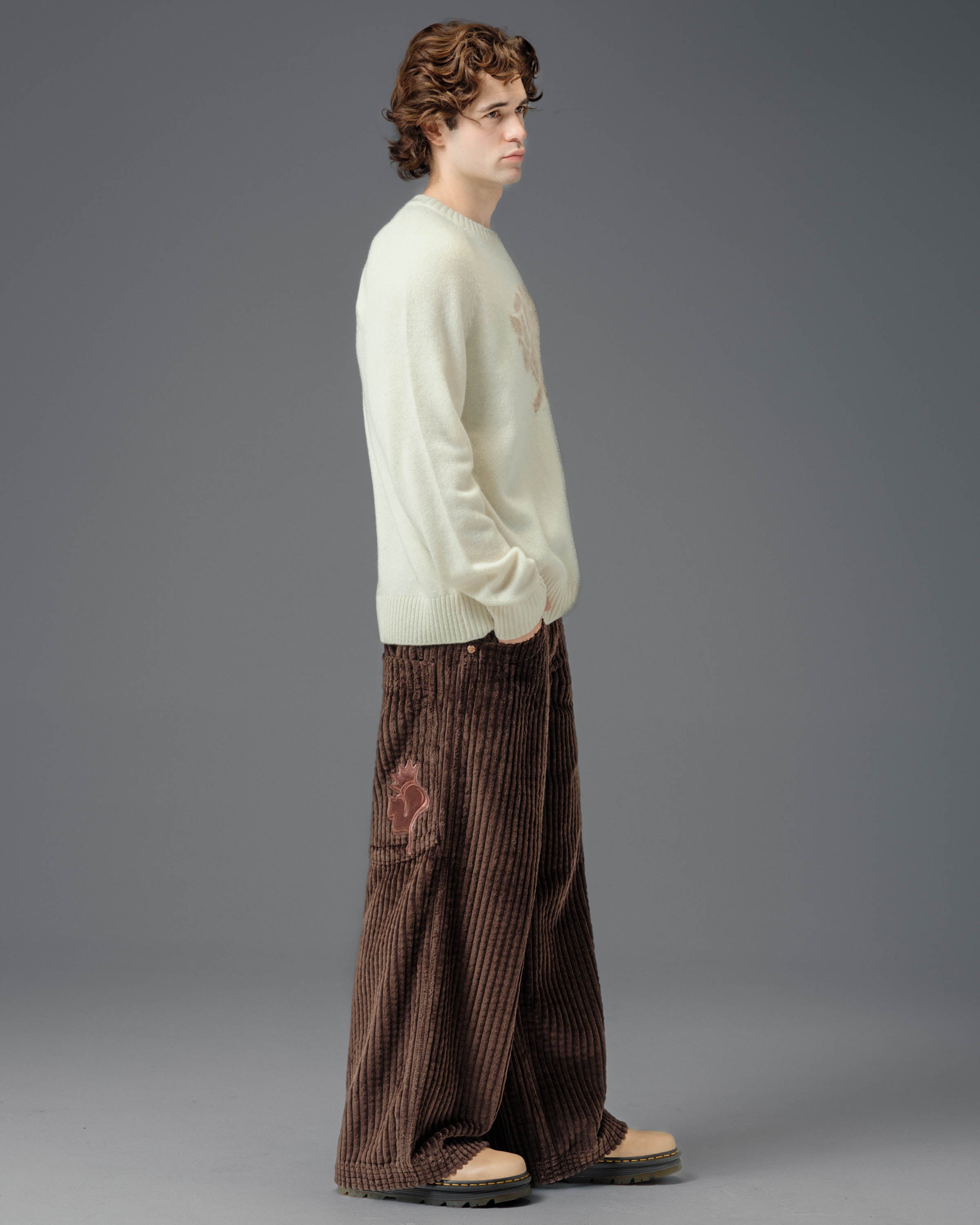 The Jester was a 90s standout— one of JNCO’s signature wide-leg fits that defined the blend of ease and street-born edge. Featuring heavy 2-wale corduroy in Java Brown and a classic 26” opening, it carries the same presence and texture. 13.75 oz heavy 2-wale corduroy, 100% cotton with a soft finish. Recognized for its multi-stitch detailing along the yokes and leg hems, the Jester carved out a dimensional, movement-ready silhouette. The Crowned J embroidery captures LA’s graffiti pulse into a single visual signature. Collector’s Edition. Limited quantities.