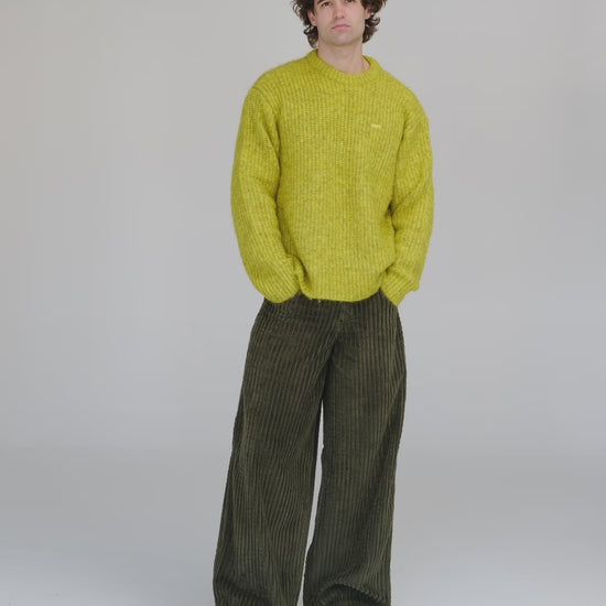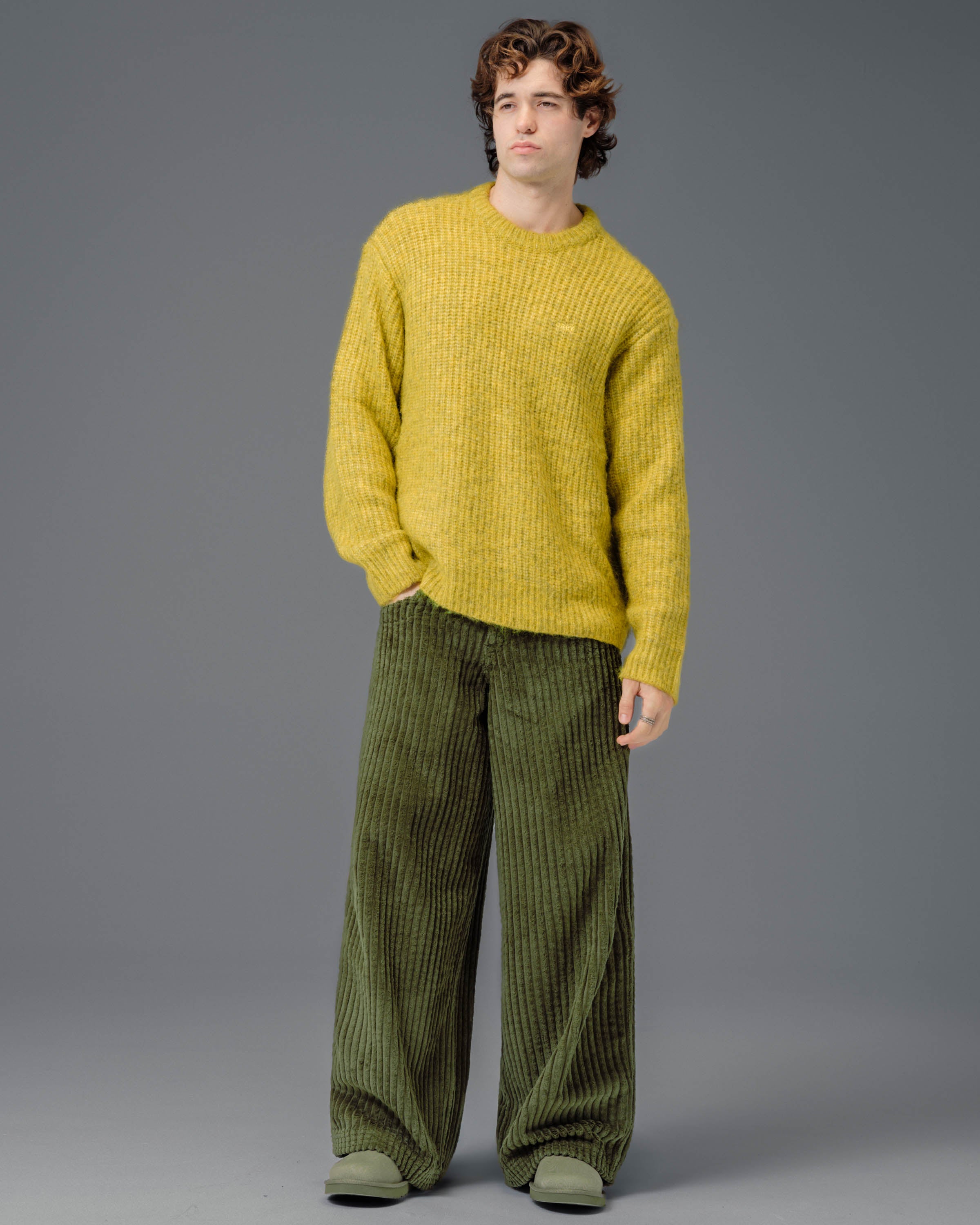 The Jester was a 90s standout— one of JNCO’s signature wide-leg fits that defined the blend of ease and street-born edge. Featuring heavy 2-wale corduroy in Winter Moss and a classic 26” opening, it carries the same presence and texture. 13.75 oz heavy 2-wale corduroy, 100% cotton with a soft finish. Recognized for its multi-stitch detailing along the yokes and leg hems, the Jester carved out a dimensional, movement-ready silhouette. The Crowned J embroidery captures LA’s graffiti pulse into a single visual signature. Collector’s Edition. Limited quantities.