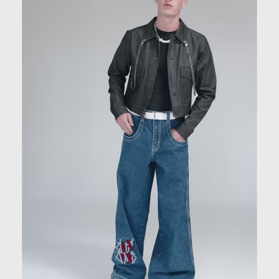 Collector’s item from the iconic JNCO Roots Collection. Dark Stone Wash, 14oz 100% cotton denim with a 3x1 left-hand weave. Classic 26" bottom opening and heavy double contrast stitching. Features “Rollin' Style 360” graffiti embroidery on front leg with nearly 78,000 stitches. Collectible Rollin' flasher included. Limited Edition – limited stock.