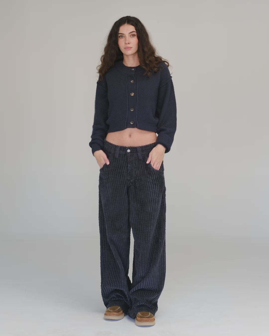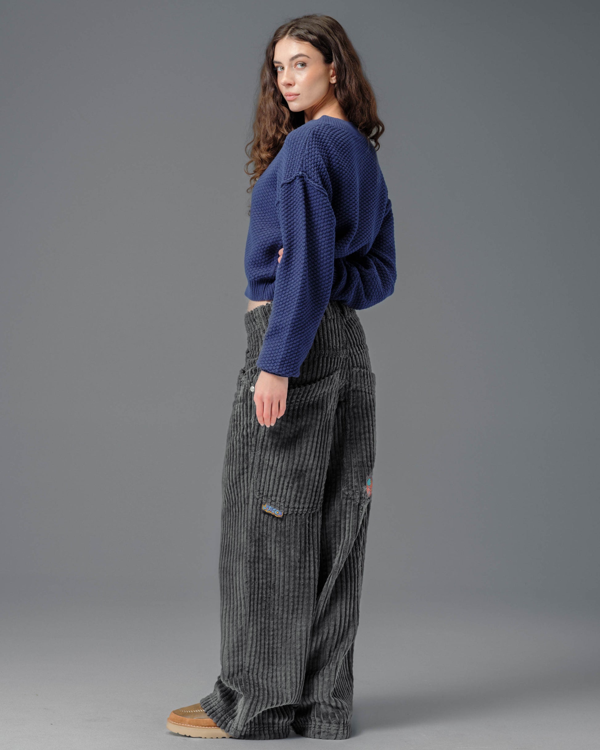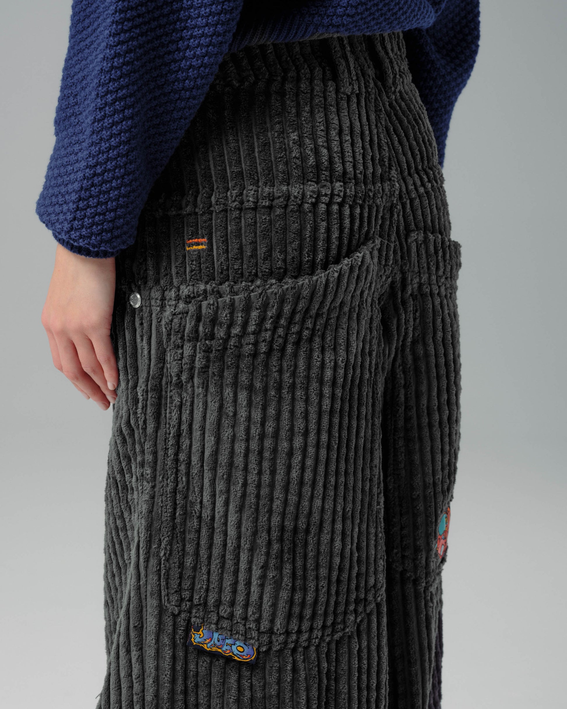 The Wizard was the mid-90s skate essential that redefined movement and ease. Featuring heavy 2-wale corduroy in Magnet and a classic 24” opening, it carries the same attitude. 13.75 oz heavy 2-wale corduroy, 100% cotton with a soft finish. Originally engineered by our skater athletes, it featured a double back yoke, on-seam utility pockets, and a wide-leg with a subtle taper— form meeting function. The 18-color embroidery on the right back pocket remains intricate, bold, and faithful to the original. Collector’s Edition. Limited quantities.