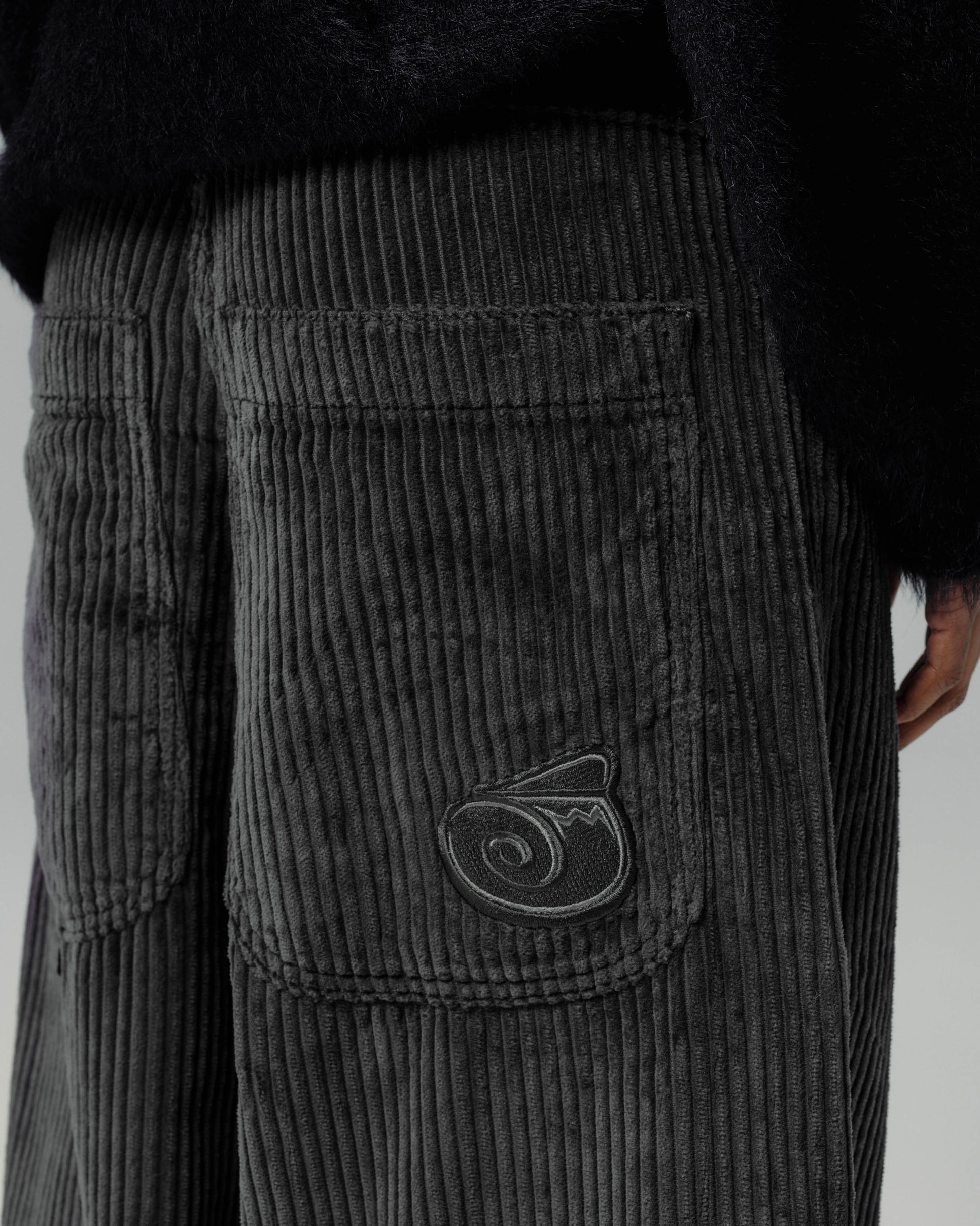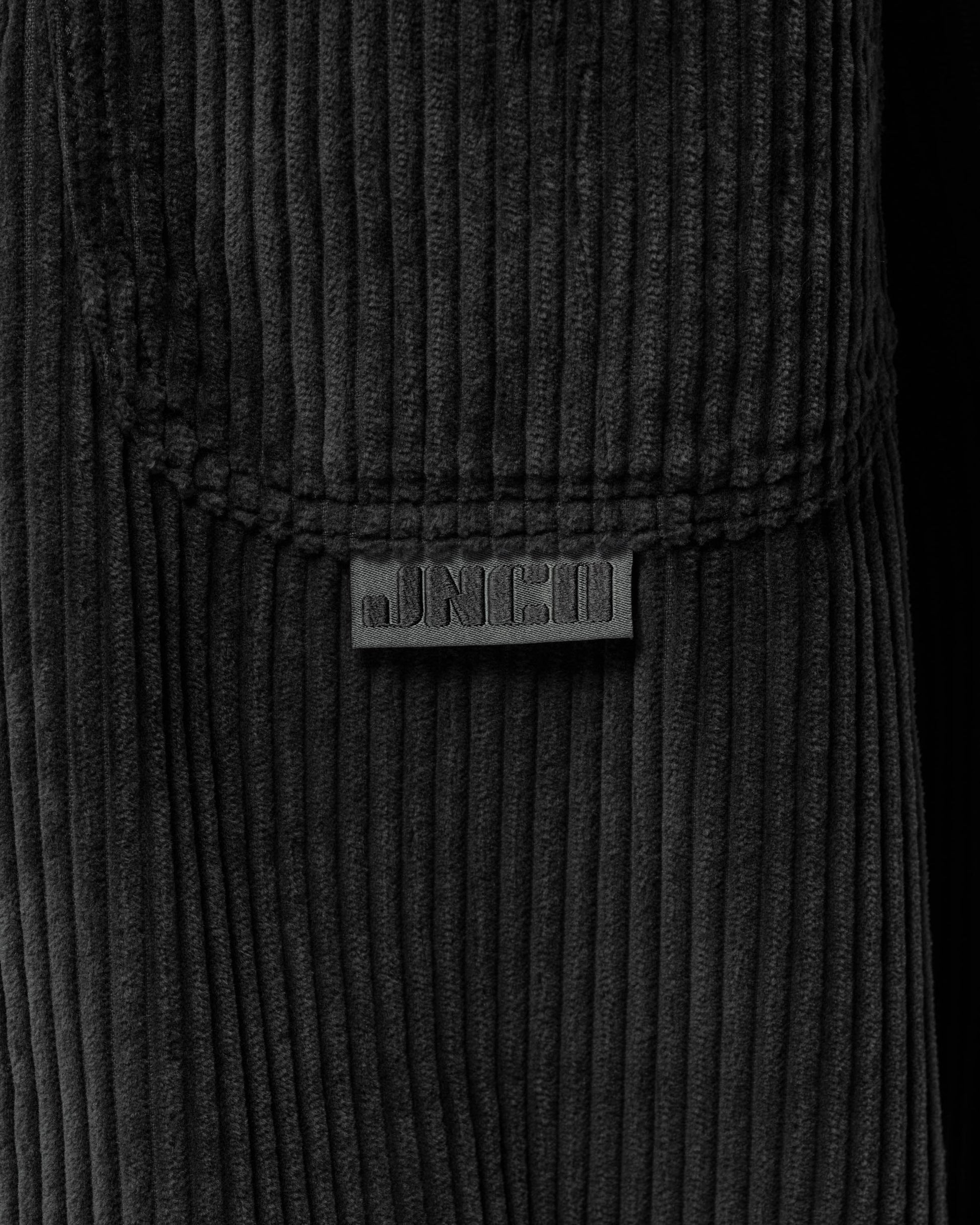 A JNCO staple in heavy 4-Wale corduroy in Magnet. 26" bottom opening, 12oz 100% cotton with a soft touch. Heavy double stitching, wide topstitched scoop and back pockets. Original artwork, labels, and iconic J embroidery on back pocket. Collectible flasher included.