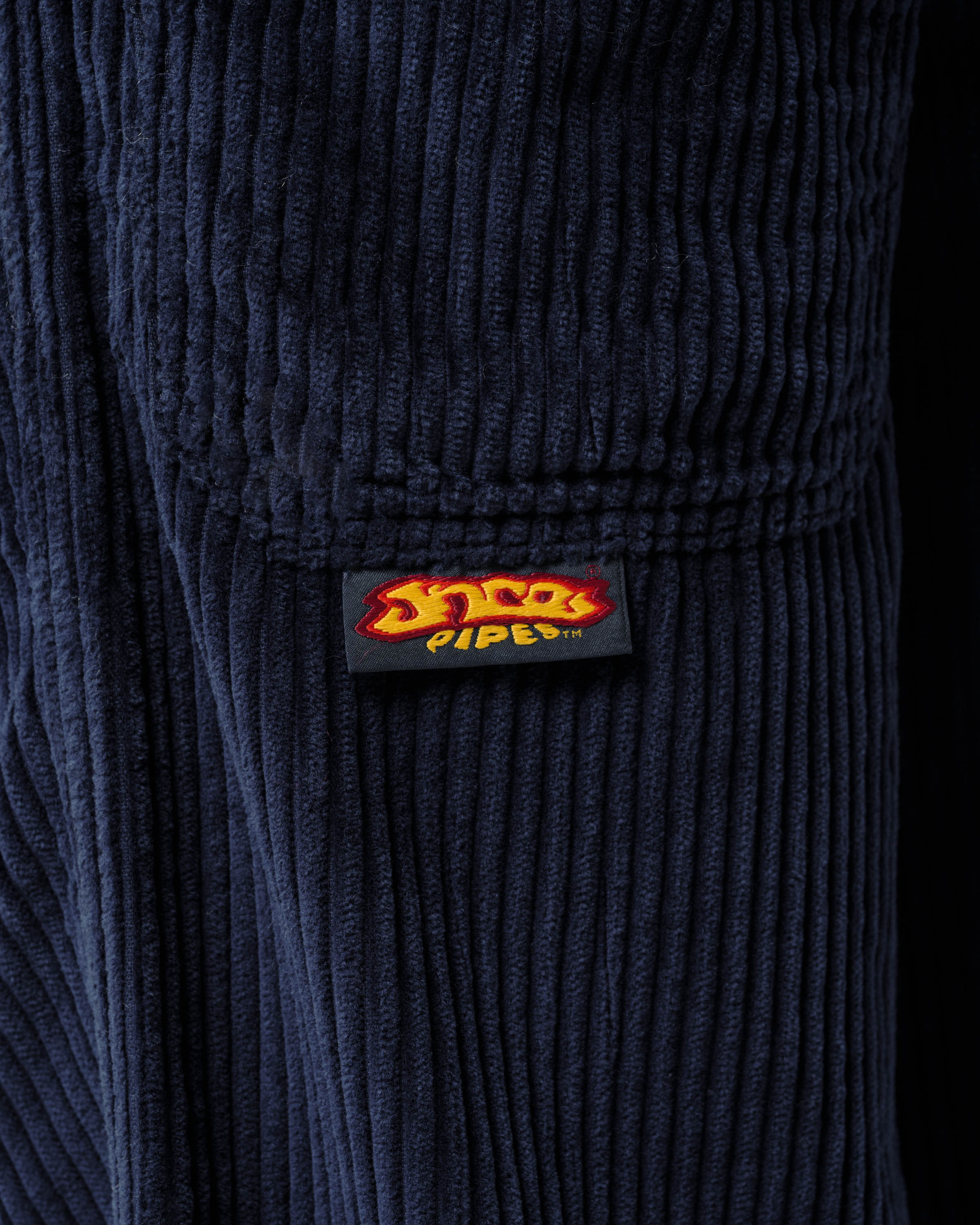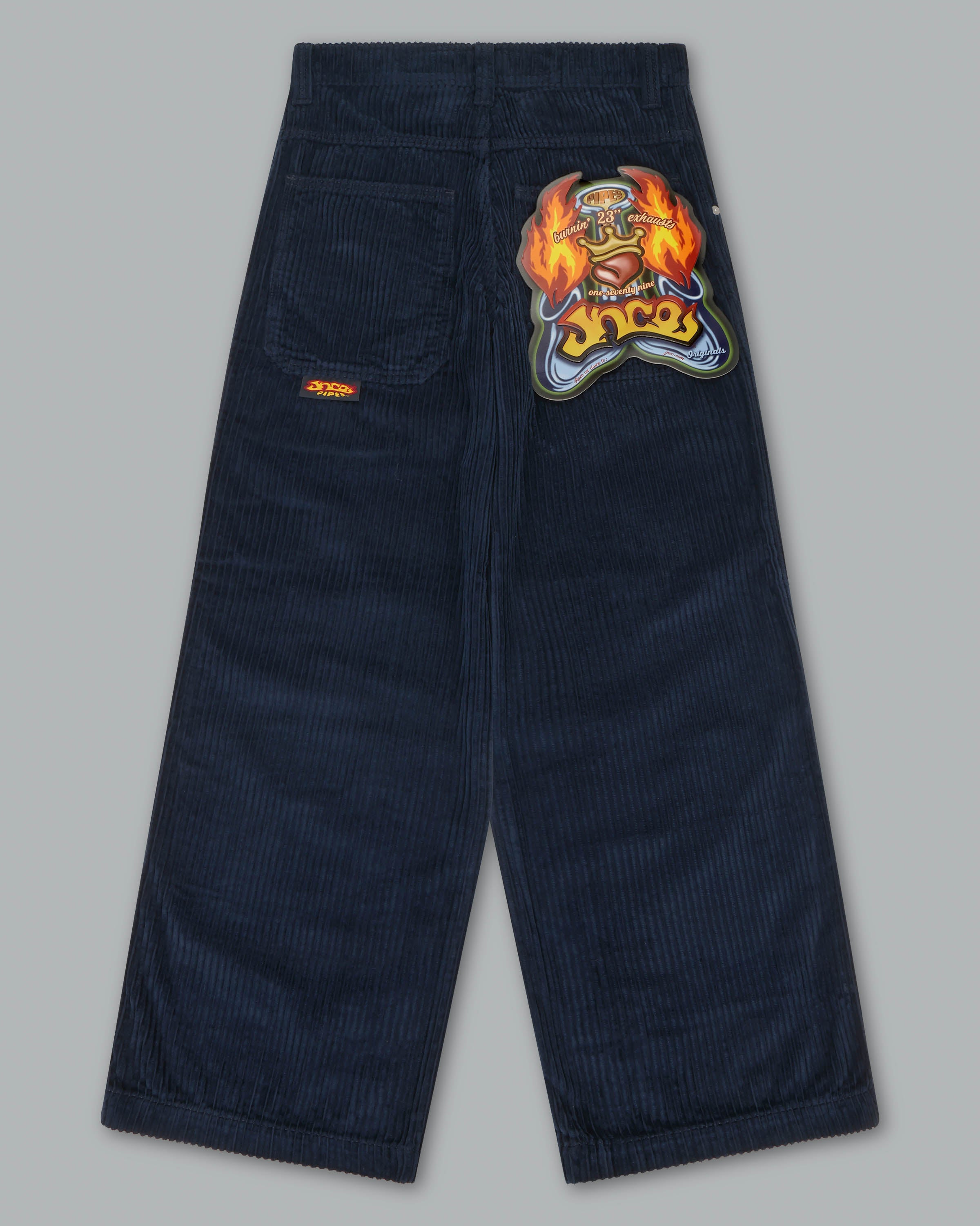 The JNCO Pipes is a JNCO classic. Our famous heavy 4 Wale Corduroy. 23" bottom opening. 12oz corduroy 100% cotton soft to the touch. Heavy double thread. Designed for detail and durability. Featuring all original artwork, labels, and front right pocket embroidery. Collectible flasher attached.