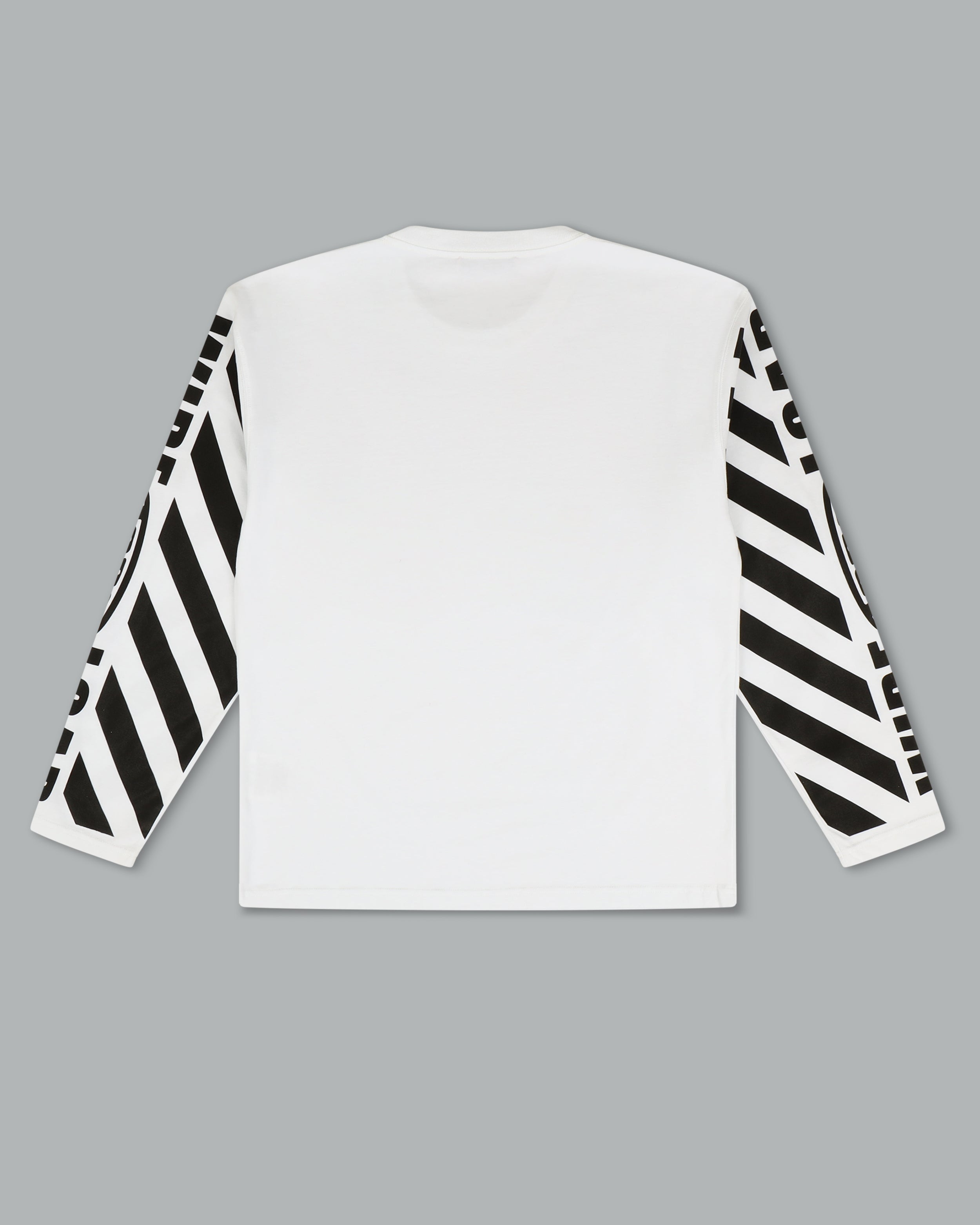 Wide Load Logo-inspired printed black chevron stripe design on sleeves. All American yarn thread and finishings. Soft to the touch. 185g jersey. 100% combed cotton.