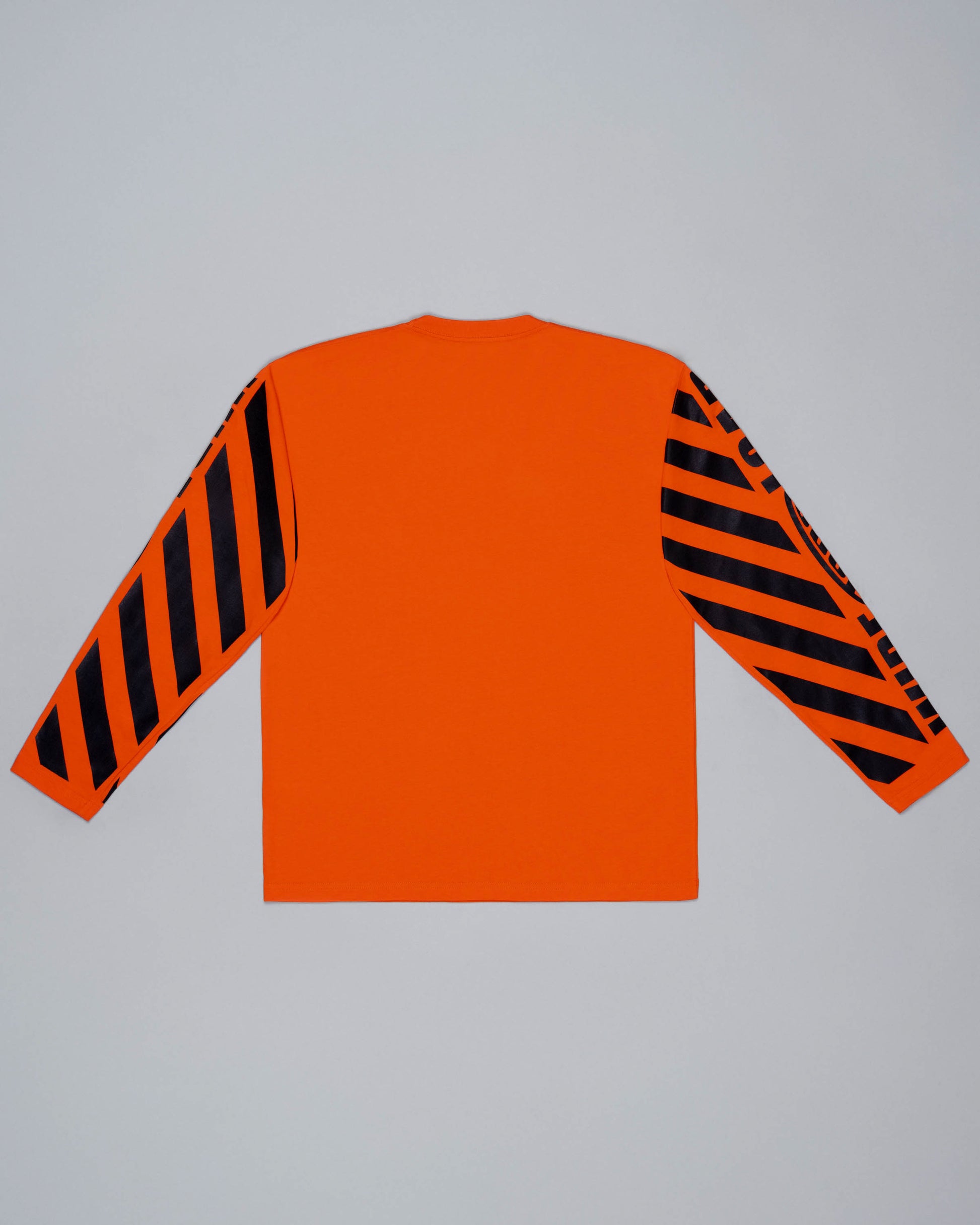 Wide Load Logo-inspired printed black chevron stripe design on sleeves. All American yarn thread and finishings. Soft to the touch. 185g jersey. 100% combed cotton. Unisex sizing.